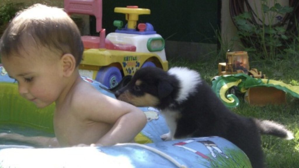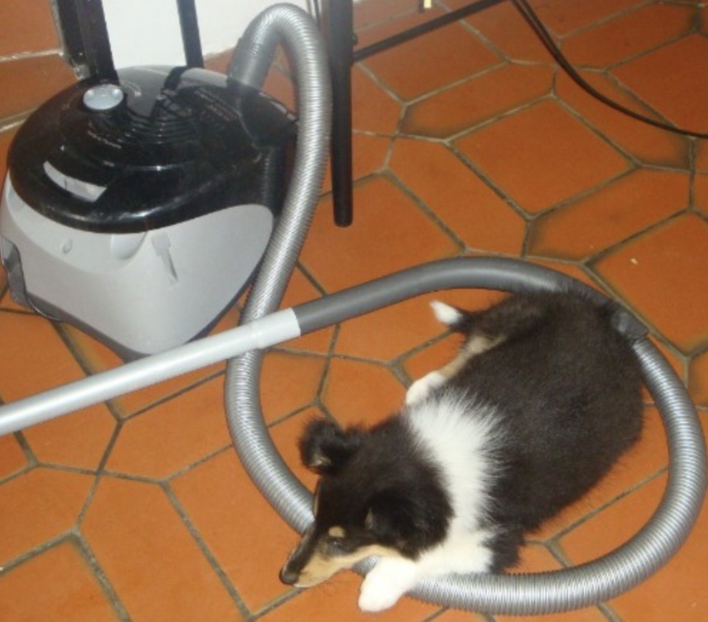 Familienalltag… Kinder machen Hausaufgaben, Papa macht die Wäsche… Welpen sind dabei
