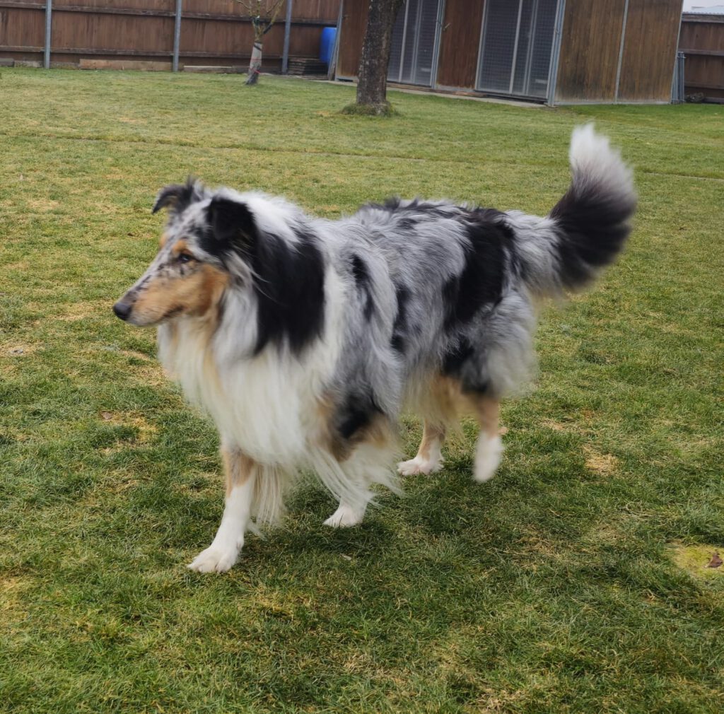 Farben: Es können blue-merle und tricolor Welpen geboren werden, vgl. D-Wurf.
